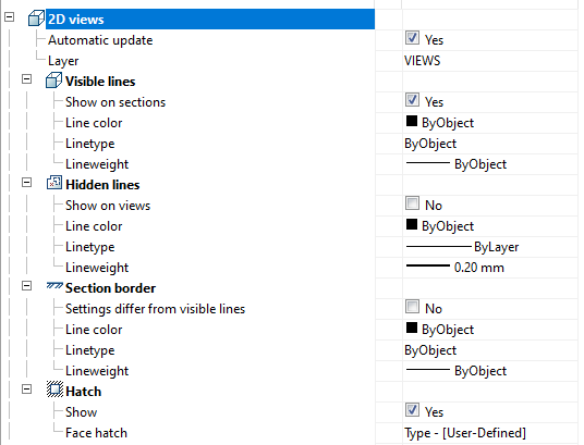 Settings differ from visible lines –controls the settings of the lines of section borders, which (settings) can be the same or different from the settings of visible lines. If No, then the next three parameters are not used.