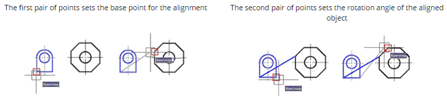 This command moves and rotates an object to align it with another object; scaling is also possible.
