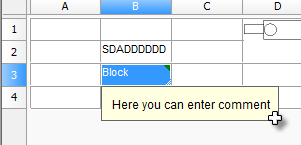 Cell with the comment is displayed in the editor by a green label, which displays a hint when you hover the mouse on it.which is displayed a hint.