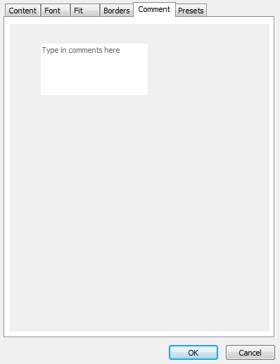 This specifies the cell, cell as well as parameters of inscribing text into the cell.