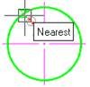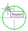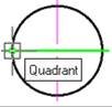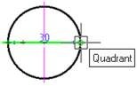 - Move the cursor to the first characteristic point of the circle and left click to specify the endpoint of the first extension line of the dimension.