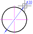- Move the cursor to the second characteristic point of the circle and left click to specify the endpoint of the second extension line of the dimension.
