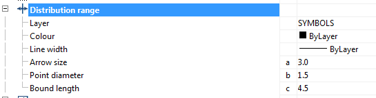 Settings of distribution range allow you to change the layer for label placement, color, size lines, arrows.