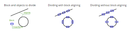 The Divide command distributes points or blocks at the same distance from each other along an object’s length or perimeter. Distribution along object points or blocks divides the object into segments of a specified length.