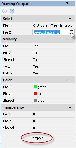1. Start the Compare Files commto open Drawing Compare panel.
