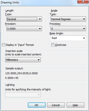 The command opens the Drawing Units dialog box, where you can define the format and accuracy of the linear and angle units.