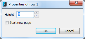 Row properties | Use to alter the height of the row containing the active cell. A dialog box appears in which the row height, in millimetres, can be specified: ![]() |