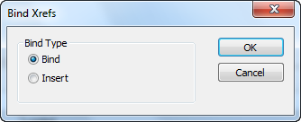 4. In the box Bind xrefs select the bind type: Bind or Insert.
