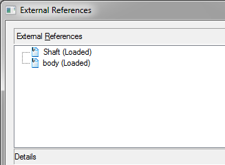 The command opens the External References dialog box. It displays all external references contained in the document and manages these references: