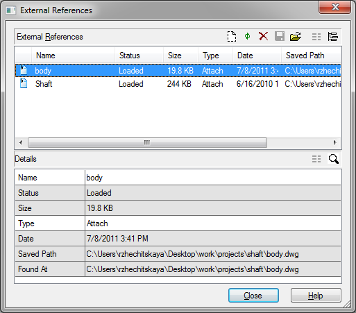 | Found at | Displays the path where the external reference file is located. This place is the actual file location. |