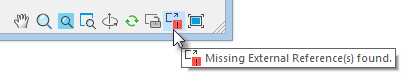 If the external link file was not found at all, the message appears, and the indicator button turns red.
