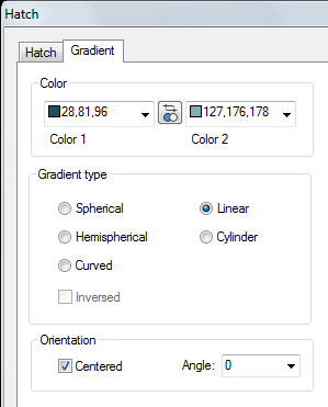 | Angle | Specifies the angle of gradient filling. Angle specified about current UCS and independently of angle of rotation of hatch. |