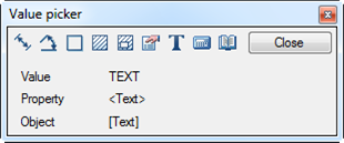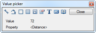 NOTE: If the Value picker dialog box was called up at the runtime of another command (for example, from the Position note dialog box of the Pick from drawing command from the context menu), the measured value is passed to this dialog box.