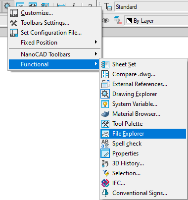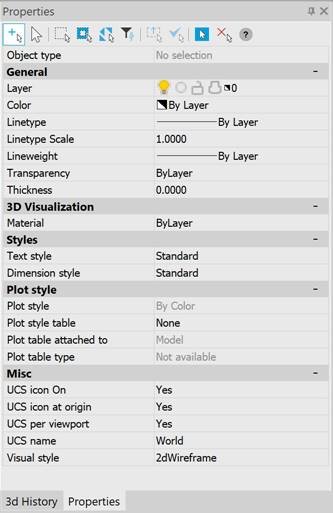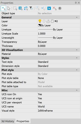The Properties bar can be combined with other functional bars, such as Quick Selection, Drawing Explorer, Tool Palettes and other. You can switch between merged functional bars using tabs in the bottom part.