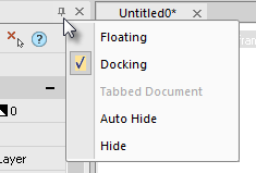 A palette attached to the window can be switched to the state of a pop-up tab. To do this, click on a pushpin icon in the toolbar header: