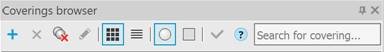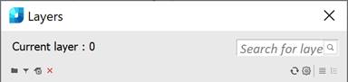 In dialogs and toolbars, the Search field in the upper right part is intended for quick searching of objects by name. For example, LAYERS, LAYERSQUICK, COVERINGBROWSER: