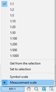 By default, the current scale of symbols is set to m1:100 and the scale of measurements is set to M1:1.