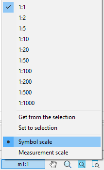 2. Select the “Symbol scale” type on the scale button in the status bar (in this method, the “Use symbol scale” setting will automatically change to “Yes”).