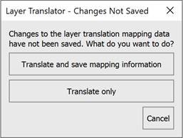 If the current layer mapping table has not been saved (Save… button), a warning message will appear: