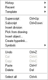 The Insert special symbol icon opens the panel with the table of special symbols, to select and insert them at the current cursor position in the text input field.