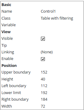 Table . Table variables with the ability to view and select a row.