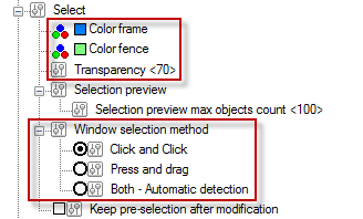 Selection parameters are set in Select section of Options dialog: