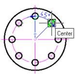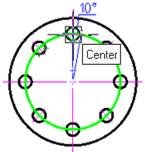- Specify the first point of the angular dimension (vertex of angle):