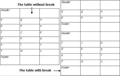Close the dialog box. In the table edit window the break will be marked by a border, this makes it possible to change a row height.