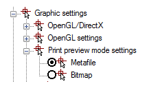 When plotting individual files (with rich graphics, a large number of viewports, etc.) the message “Not enough memory to create preview” can appear in the preview window. In this case it is necessary to change the setting in the Print preview mode settings section (Graphic settings item of the Options dialog box).