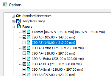 1. Select the Papers section name of the Options dialog box. To create a new paper format based on the existing one, select the required format in the section list.
