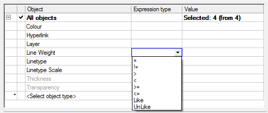 Set result to new selection – objects matching the search conditions will be selected in the drawing, and all other objects will be deselected;