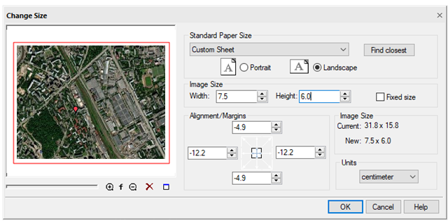 - Resize the image by increasing or decreasing the margins. To do this, clear the Fixed size checkbox and, using the appropriate fields in the Alignment/Margins section, increase or decrease the size of margins in required directions by entering positive or negative values in the appropriate fields;