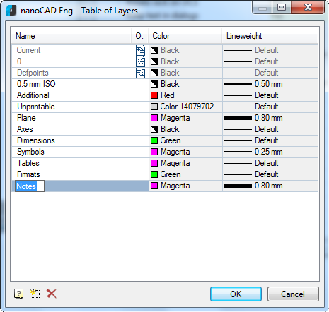 NOTE: When saving settings in a configuration file (not in a current document), all notes will be created on the Notes layer by default. It does not matter whether this layer is in the document. If a layer does not exist, it will be created with the parameters specified in the Table of layers dialog box.