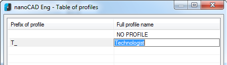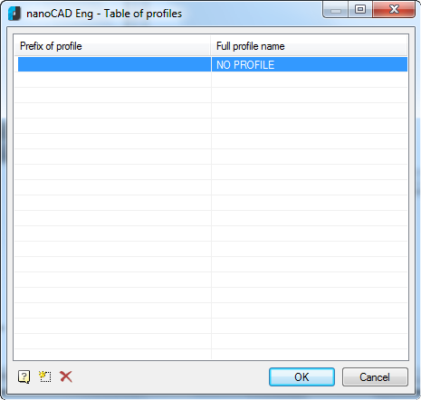2. Open the Table of profiles dialog box.