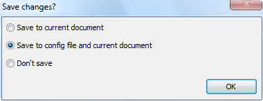 13. In the Save changes? dialog box select the* Save to config file and current document* parameter and select OK.