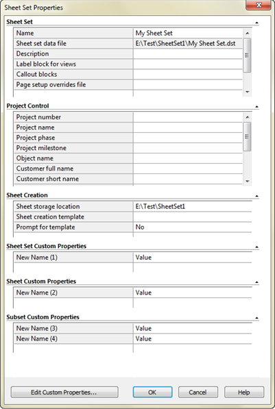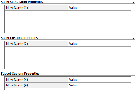 Sheet Set Custom Properties, Sheet Custom Properties and Sheet Subset Custom Properties contain the custom properties that are associated with the sheet set, sheet and subset.