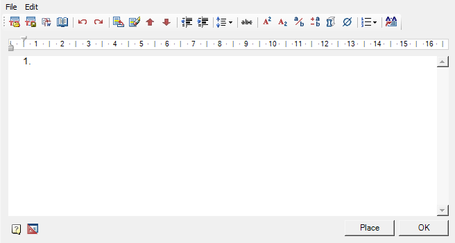 Important! The special characters used in the editor are lost when they are transferred to an external file.