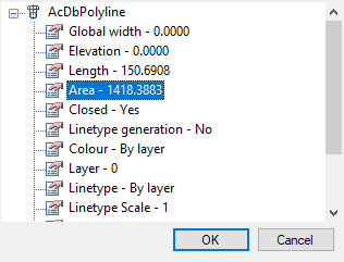 5. In dialogue “Properties” selecting “Area” and press “OK”.