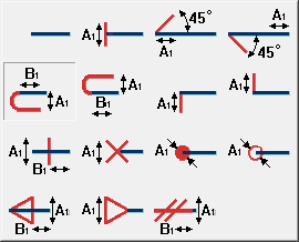 To change, select the arrow for the first or second end of the line segment by clicking on the graphic field (the button with the arrow) and choosing one of the following options: