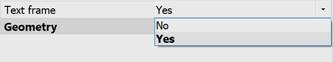 To display the text area mask frame on the screen, in the Properties bar, in the Text group, for the Text frame property, select Yes from the drop-down list: