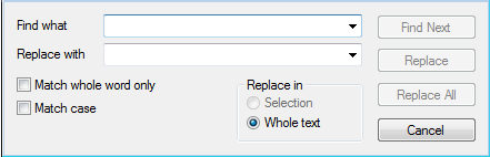 When replacing provides an opportunity to consider only whole words and case search string using by appropriate switches. It is also possible to carry out replacement in the selected area or throughout the text.