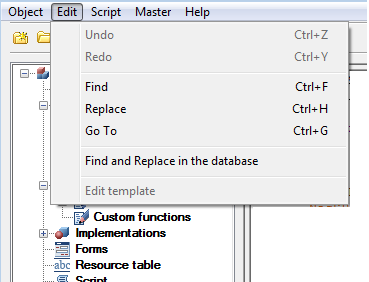 Find – search for a given string on the script of the current element (promptness keys Ctrl+F).