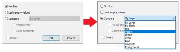 In the window that opens, select the desired value. To set the yellow color, select the Compare item and select Yellow from the drop-down list of available values.