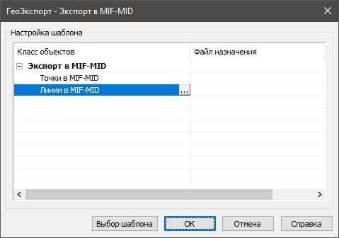 After configuring all templates, in the geodata export dialog, to the right of a name of each template, specify an output file of MIF format, to which the data should be exported.