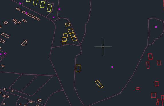 Usually, in the nanoCAD drawing, roads and buildings are represented by polylines: