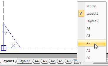 To activate a layout (to set it current) just left click on its tab. If there are many of layouts in the document, to move from one layout to another, use the